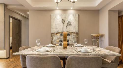 公寓拥有百余套高级公寓,室内设计融合了现代设计理念和时尚艺术风格,轻奢雅致。这里130平米~200平米的两房、三房超大户房型,为您提供两或三个独立卧室、宽敞的生活空间及设备齐全的厨房,是商旅人士下榻的理想之选。